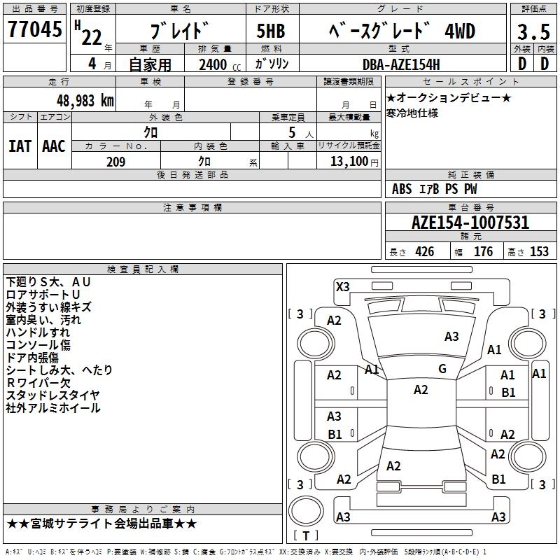 TOYOTA BLADE BASE GRADE 4WD - лот 77045