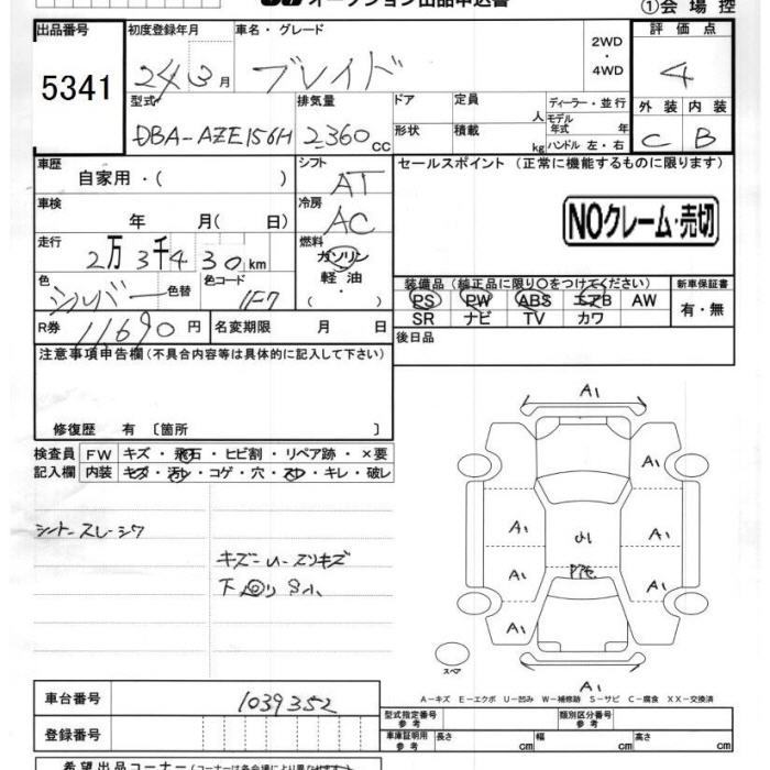 TOYOTA BLADE - лот 5341
