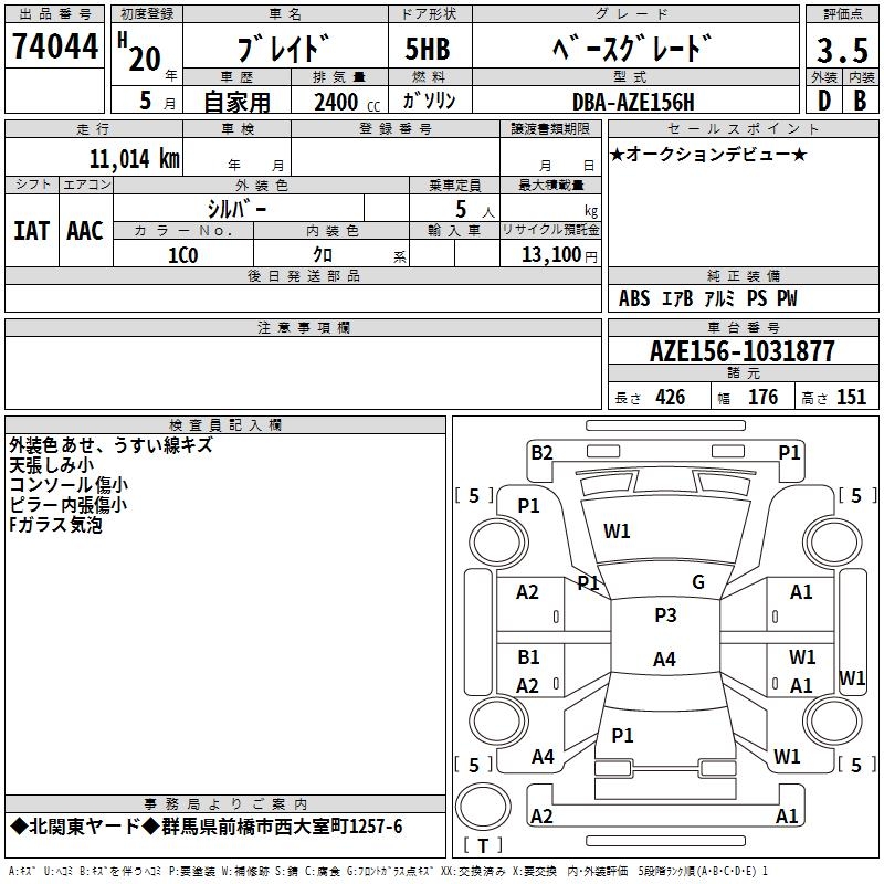 TOYOTA BLADE BASE GRADE - лот 74044