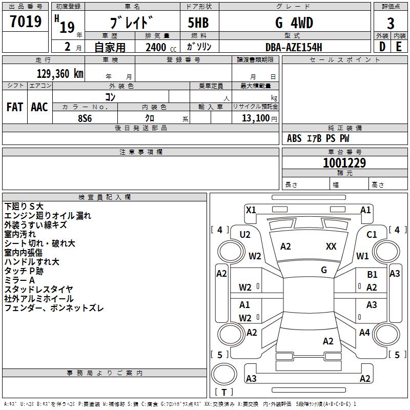 TOYOTA BLADE G 4WD - лот 7019
