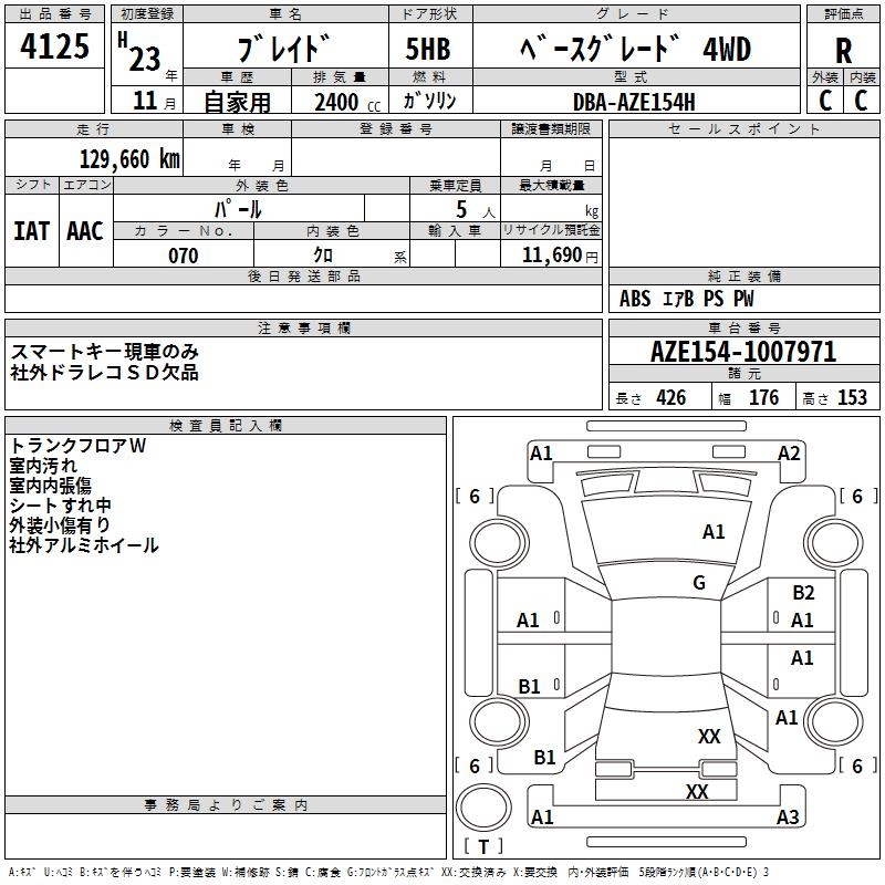 TOYOTA BLADE BASE GRADE 4WD - лот 4125