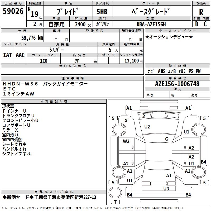 TOYOTA BLADE BASE GRADE - лот 59026