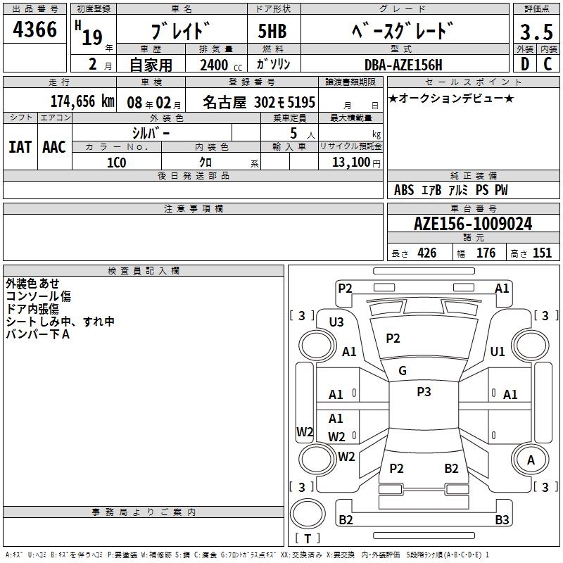 TOYOTA BLADE BASE GRADE - лот 4366
