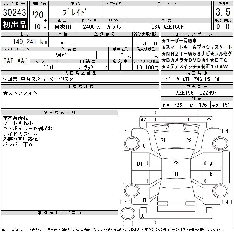TOYOTA BLADE - лот 30243