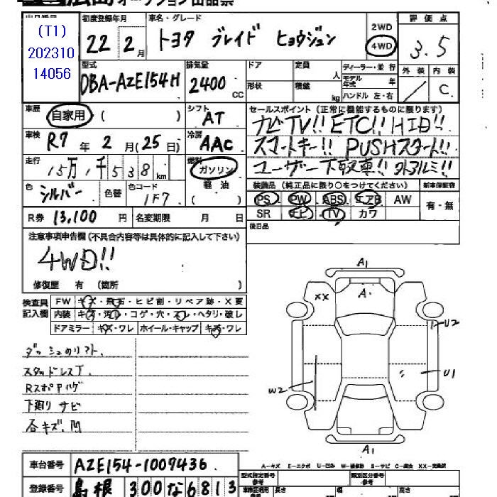 TOYOTA BLADE - лот 3286