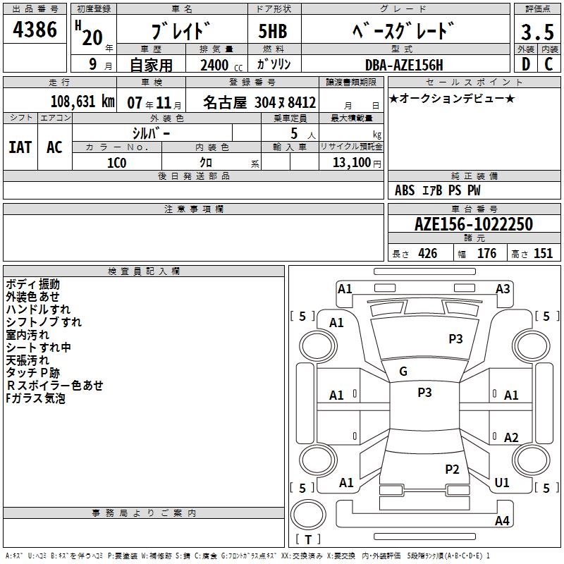 TOYOTA BLADE - лот 4386