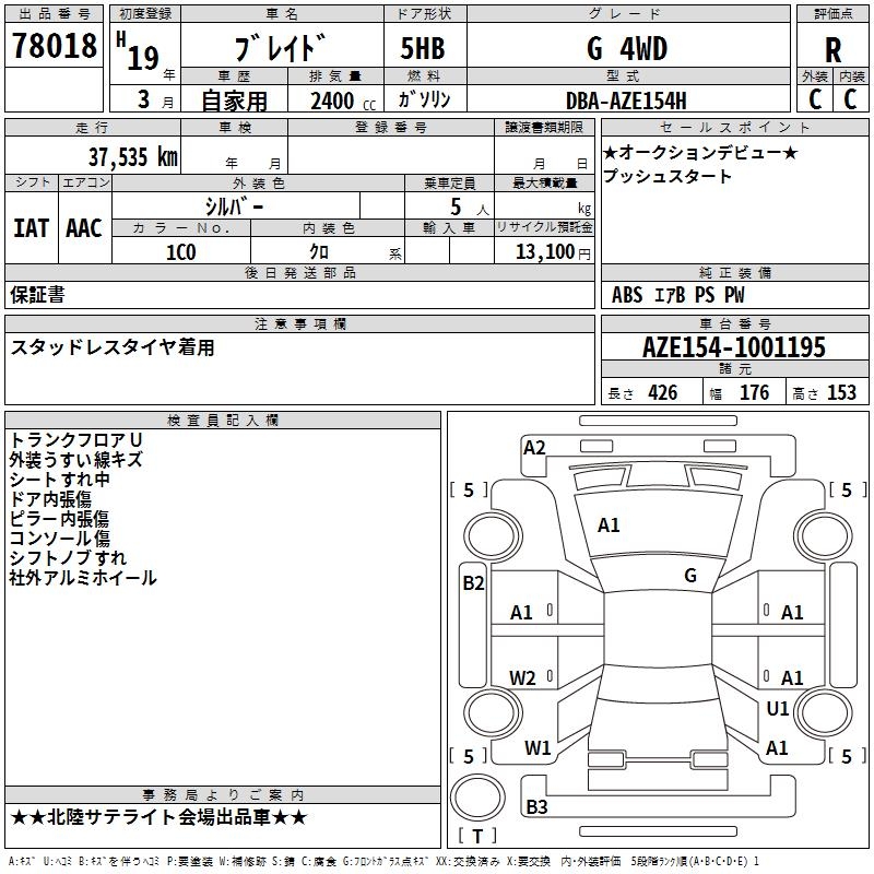 TOYOTA BLADE - лот 78018
