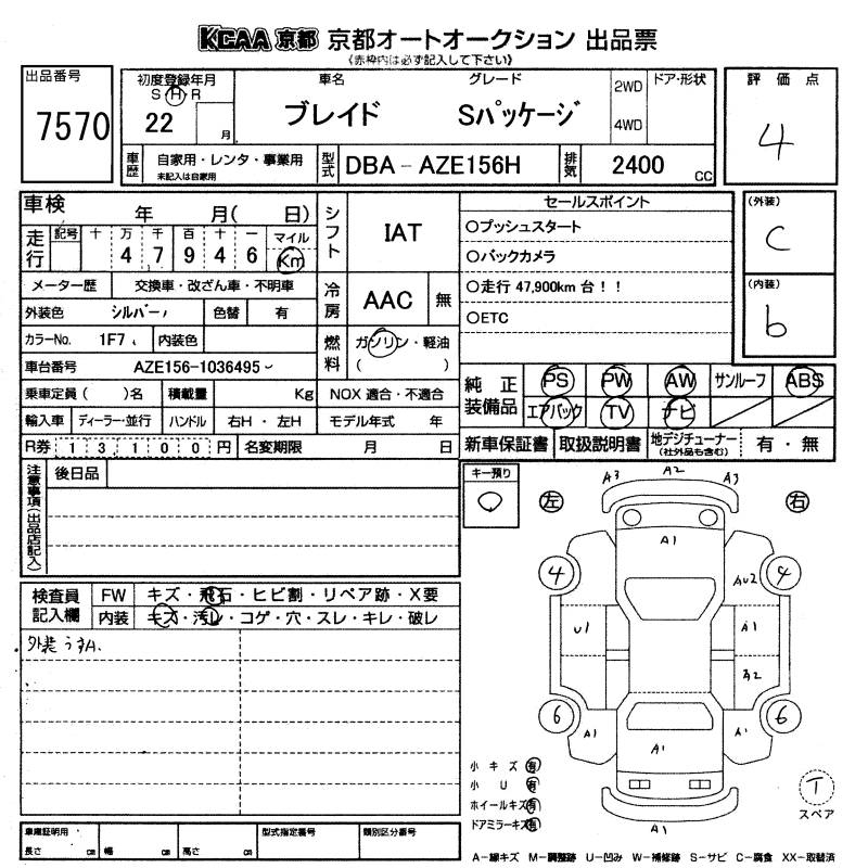TOYOTA BLADE S PACKAGE - лот 7570