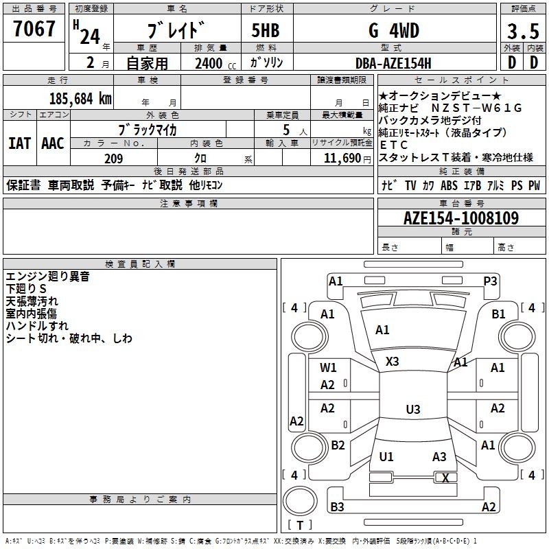 TOYOTA BLADE G 4WD - лот 7067