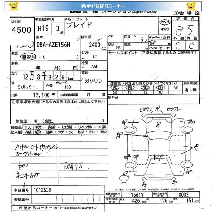 TOYOTA BLADE - лот 4500