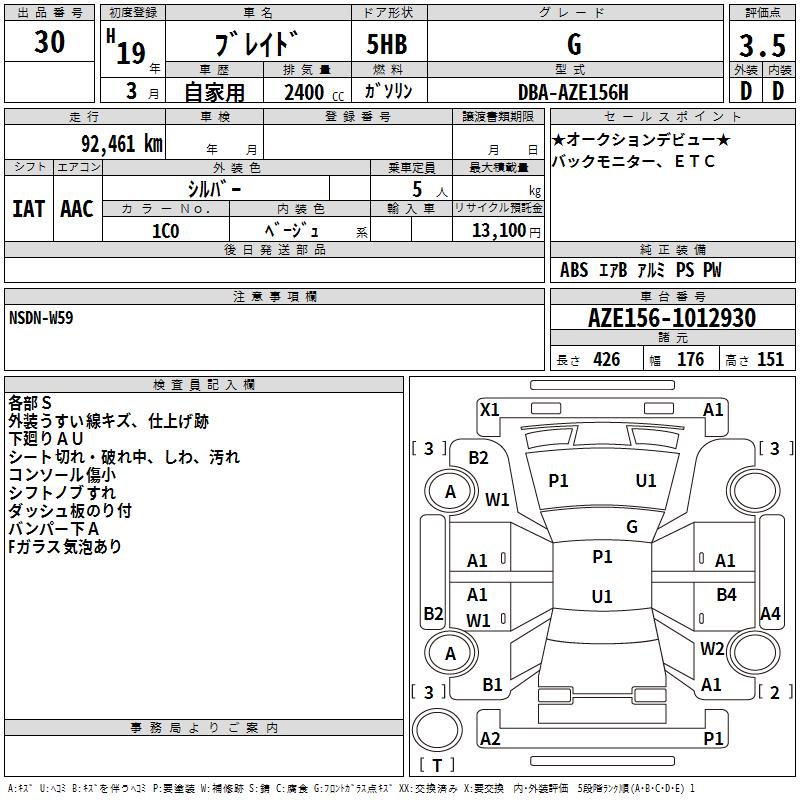 TOYOTA BLADE G - лот 30