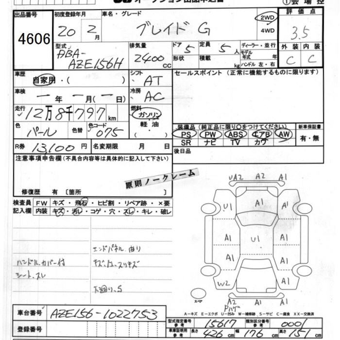 TOYOTA BLADE G - лот 4606