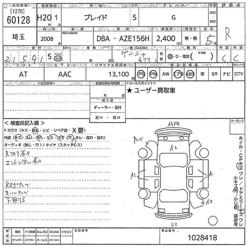 TOYOTA BLADE G - лот 60128