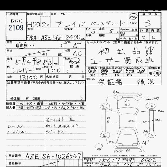 TOYOTA BLADE BASE GRADE - лот 2109