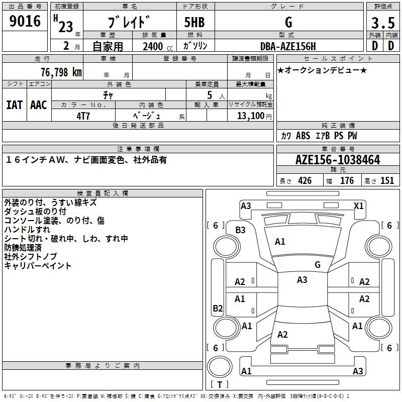 TOYOTA BLADE G - лот 9016