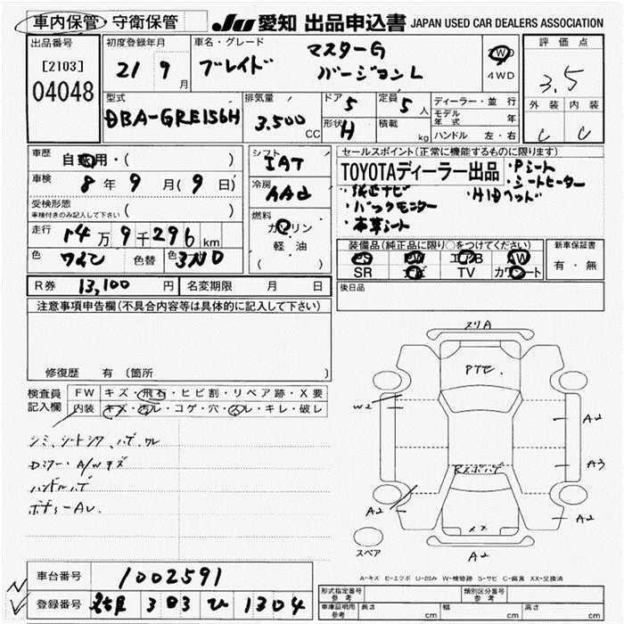TOYOTA BLADE BLADE MASTER G VERSION L - лот 4048