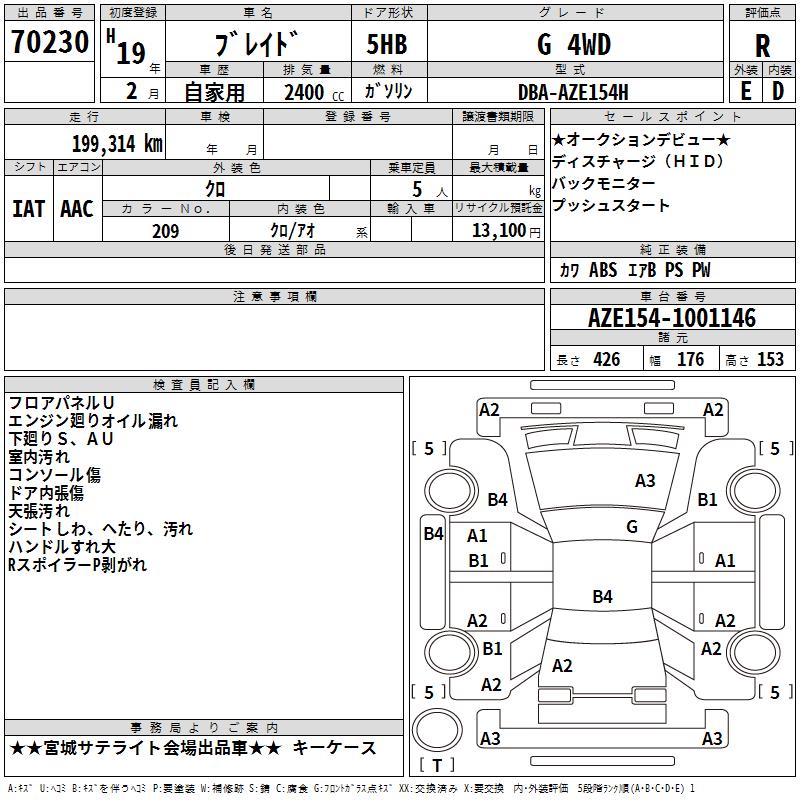TOYOTA BLADE G 4WD - лот 70230