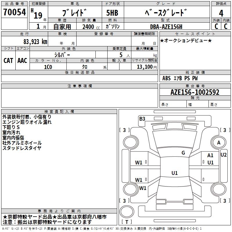 TOYOTA BLADE BASE GRADE - лот 70054