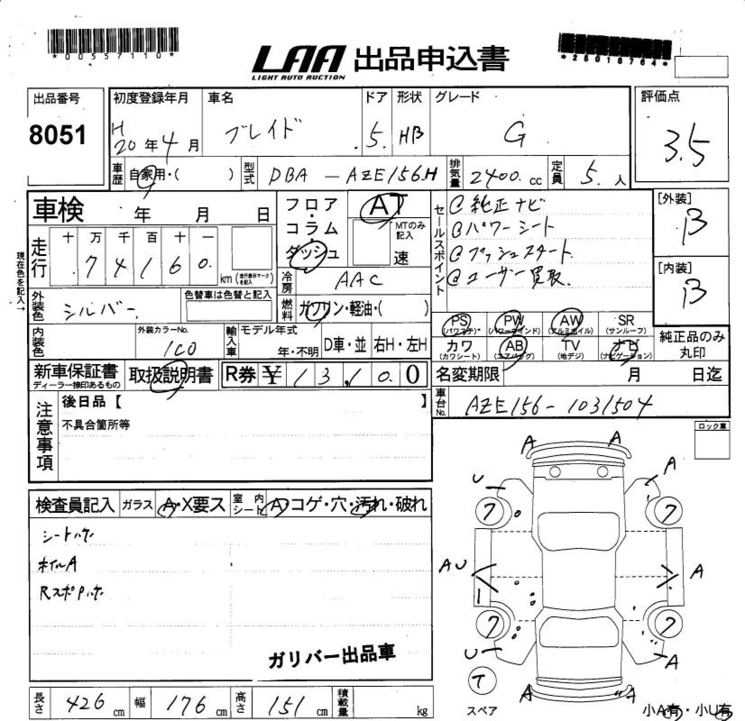 TOYOTA BLADE G - лот 8051
