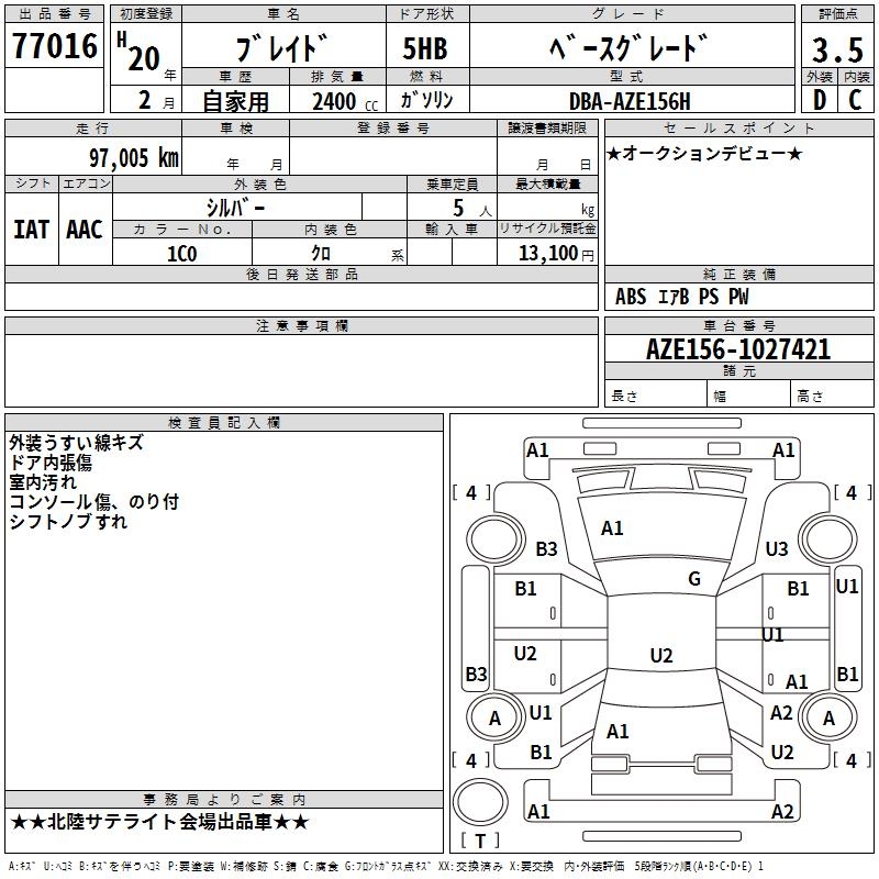 TOYOTA BLADE BASE GRADE - лот 77016