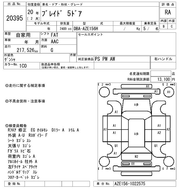 TOYOTA BLADE - лот 20395