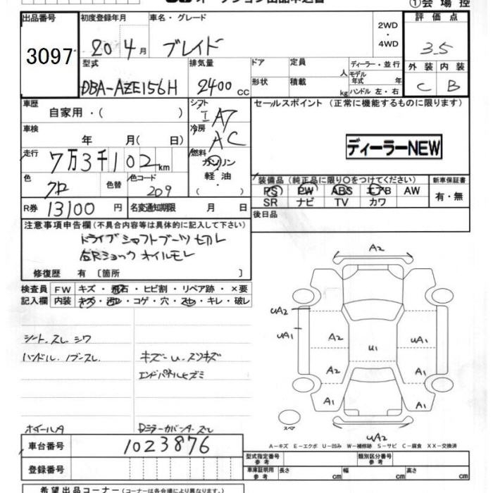 TOYOTA BLADE - лот 3097
