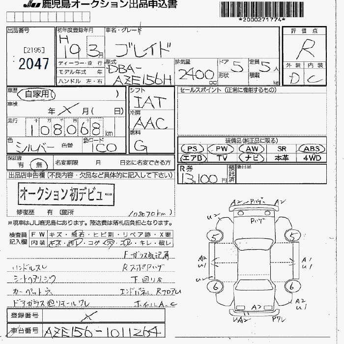 TOYOTA BLADE - лот 2047