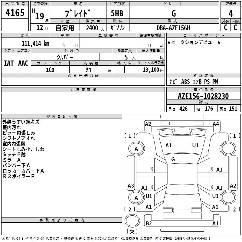 TOYOTA BLADE G - лот 4165
