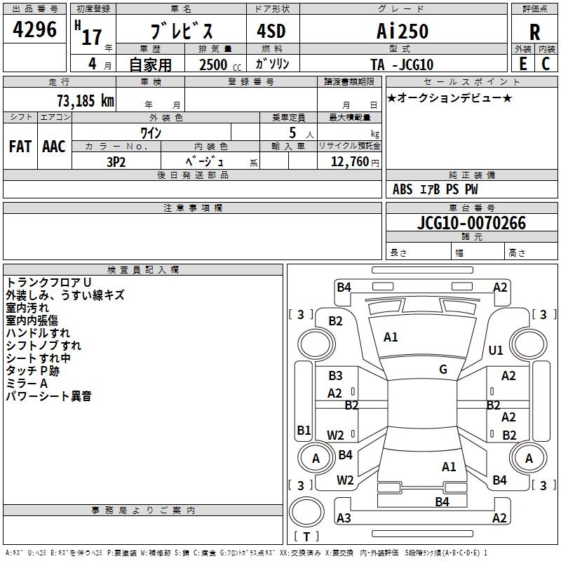 TOYOTA BREVIS Ai250 - лот 4296
