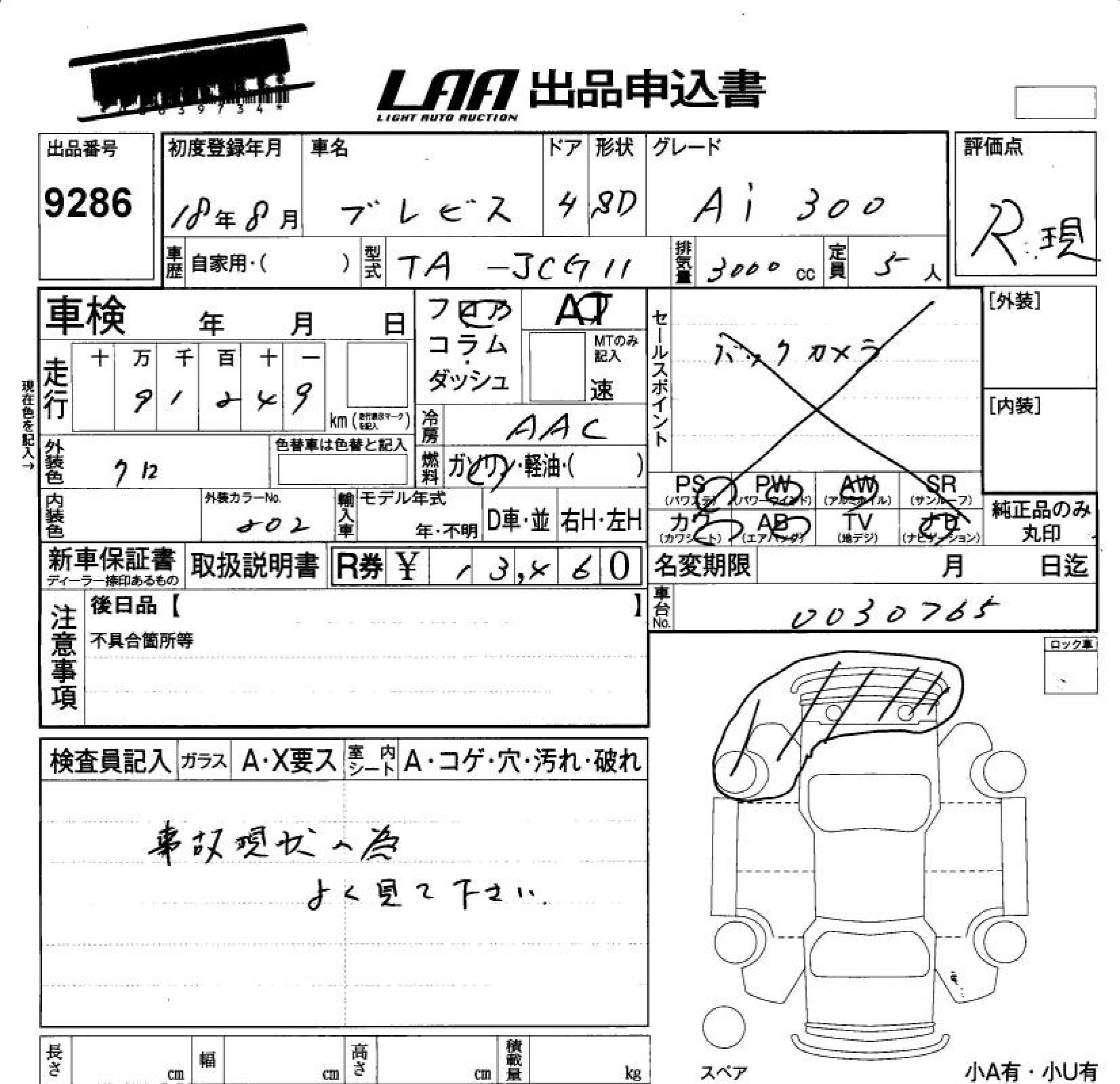 TOYOTA BREVIS Ai300 - лот 9286