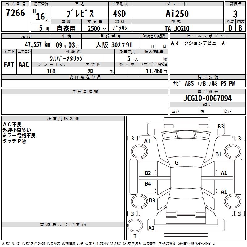 TOYOTA BREVIS Ai250 - лот 7266
