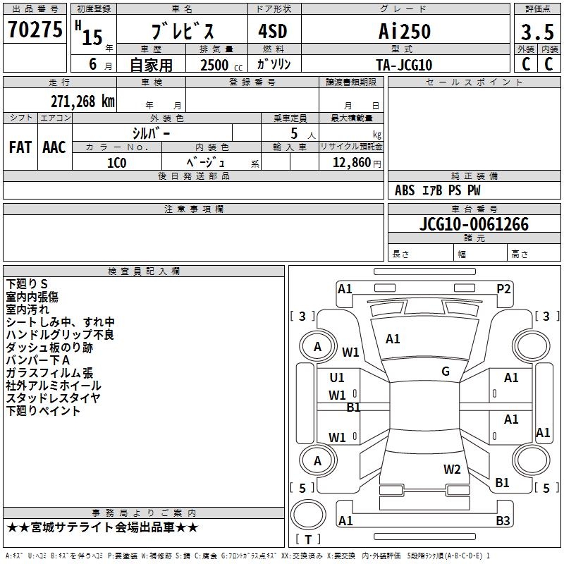 TOYOTA BREVIS Ai250 - лот 70275