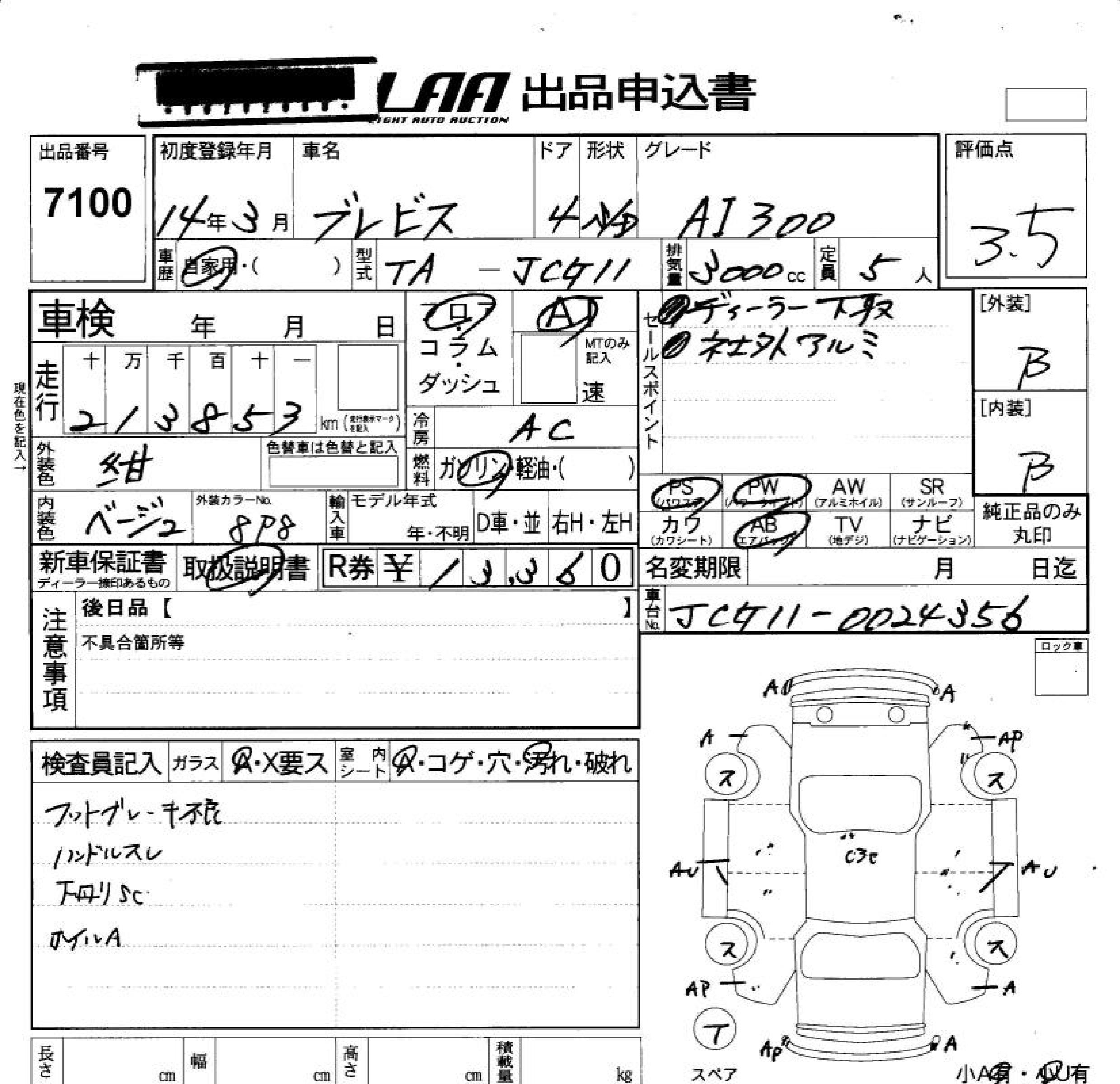 TOYOTA BREVIS - лот 7100