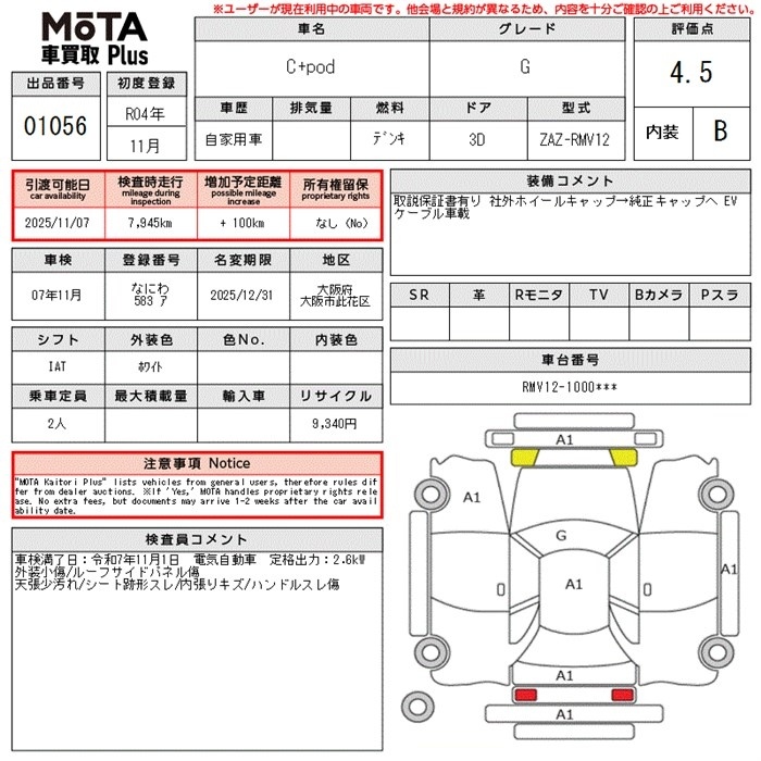 TOYOTA C+POD - лот 1056