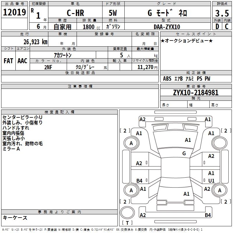 TOYOTA C-HR G режим Nero - лот 12019