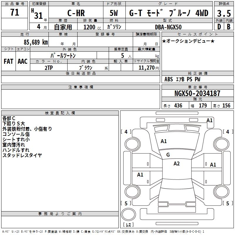 TOYOTA C-HR G-T MODE BLUE NO4WD - лот 71