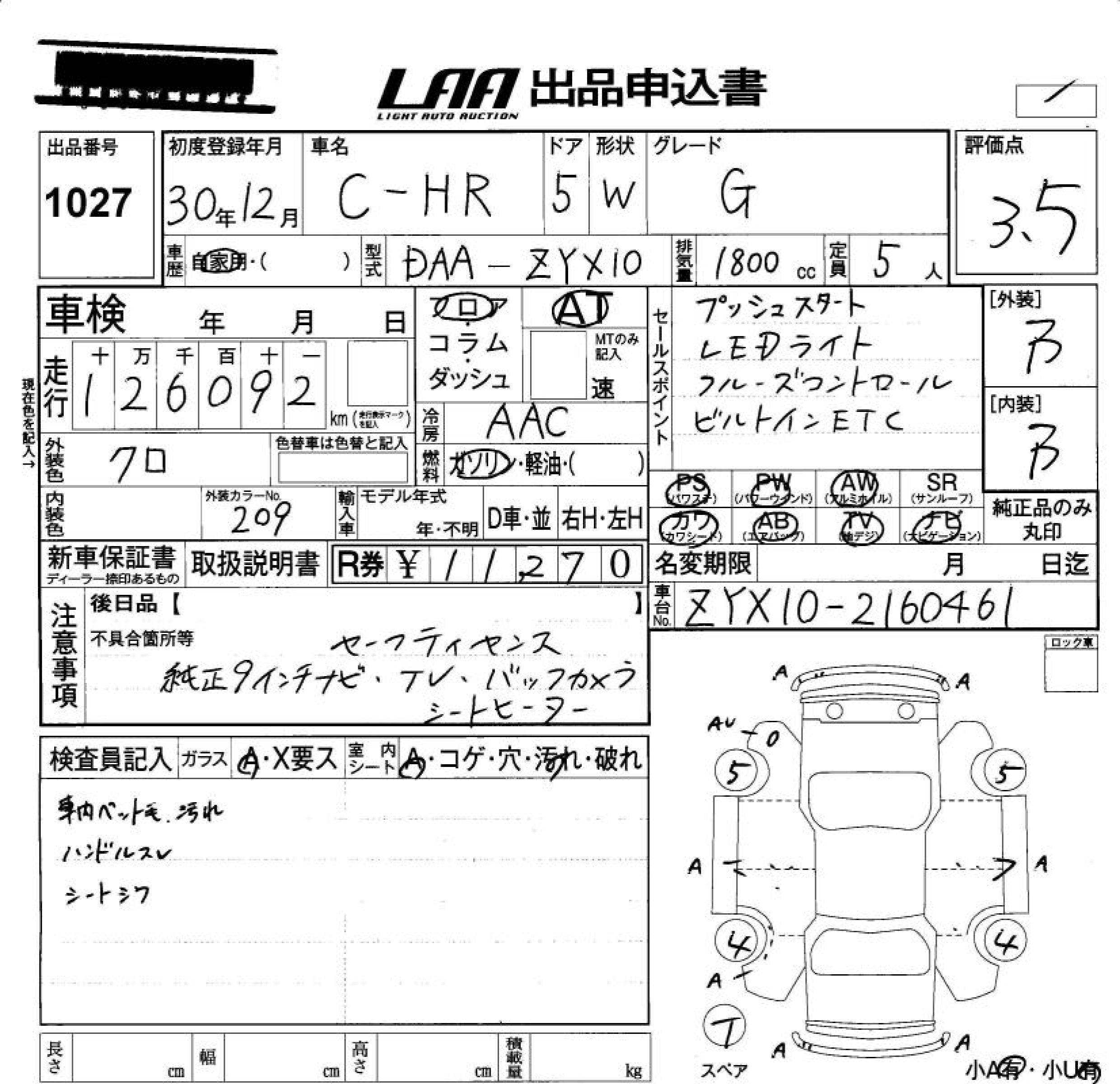 TOYOTA C-HR G - лот 1027
