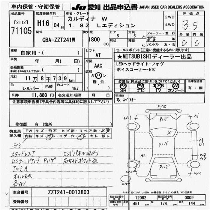 TOYOTA CALDINA 1.8Z L EDITION - лот 71105