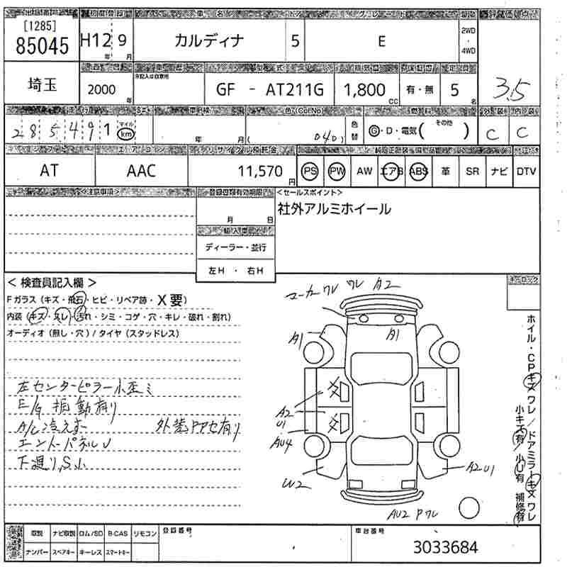TOYOTA CALDINA E - лот 85045