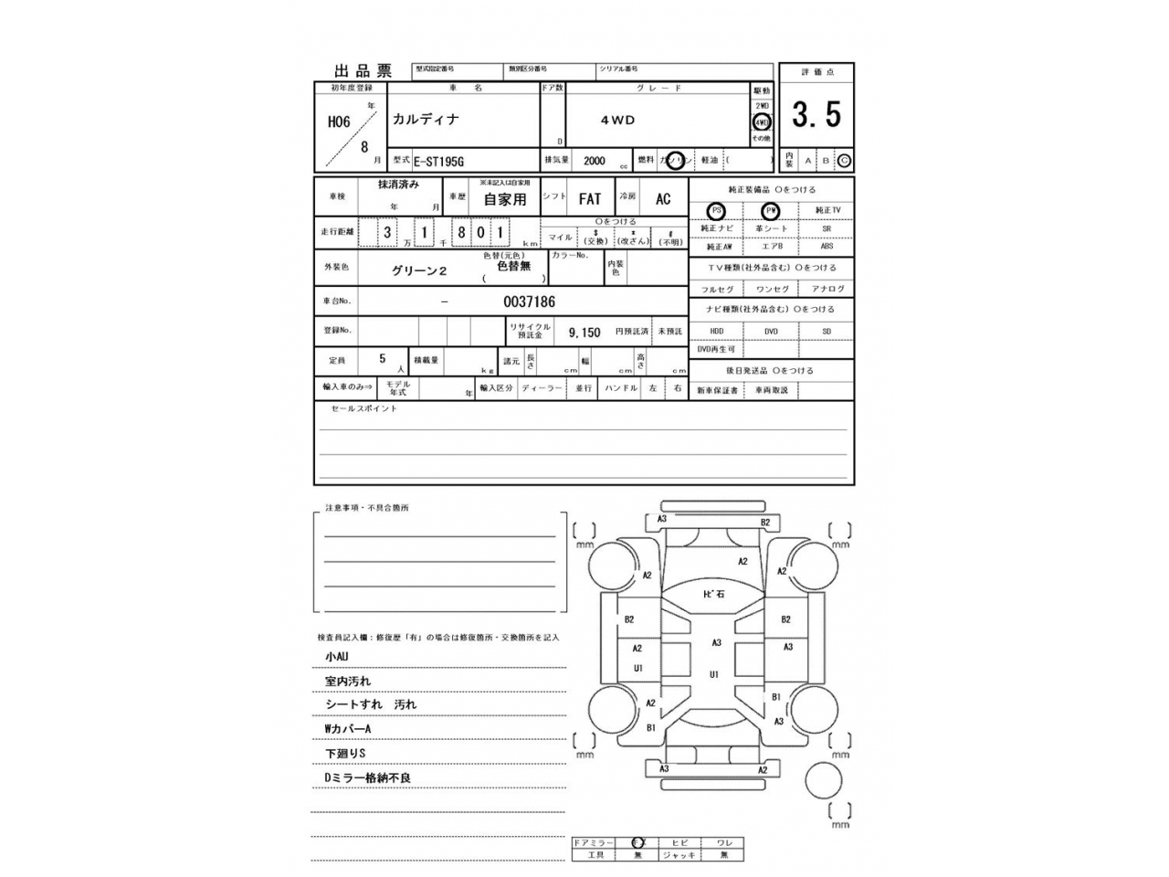TOYOTA CALDINA - лот 1026