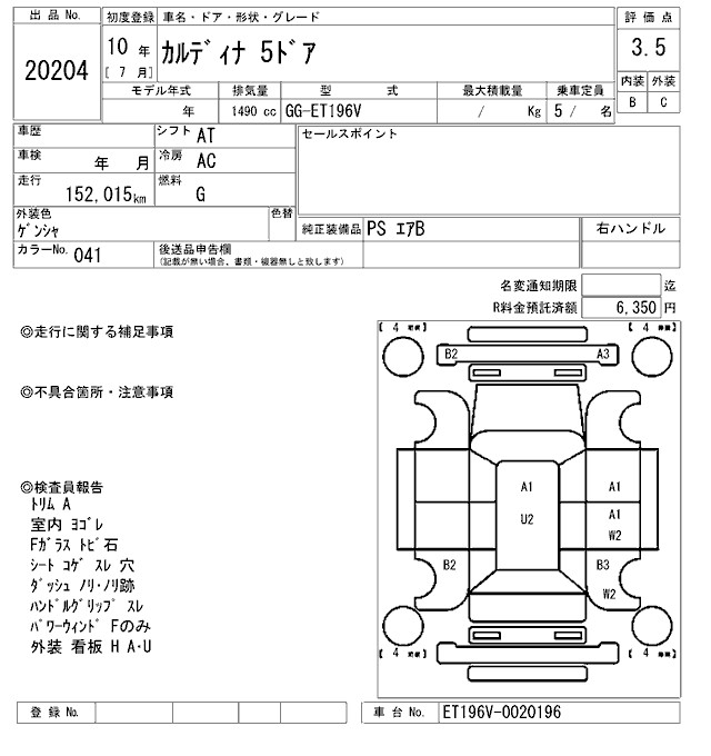 TOYOTA CALDINA - лот 20204