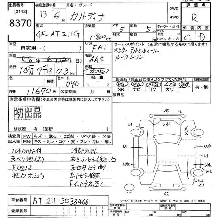 TOYOTA CALDINA - лот 8370