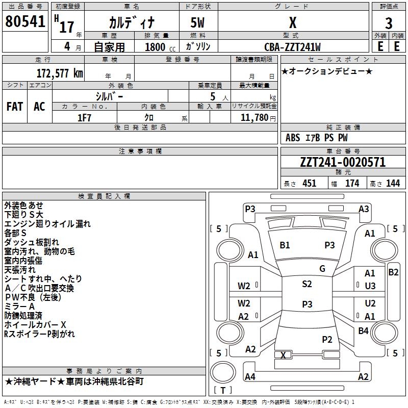 TOYOTA CALDINA X - лот 80541