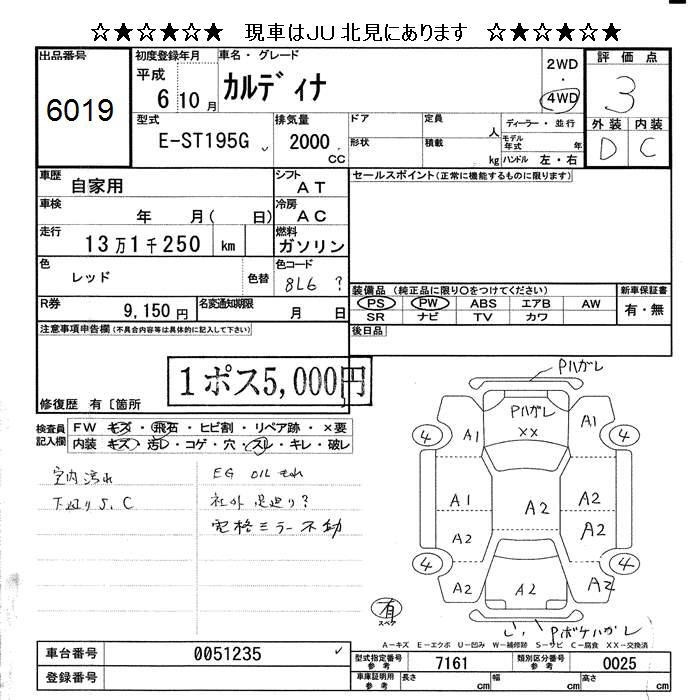 TOYOTA CALDINA - лот 6019
