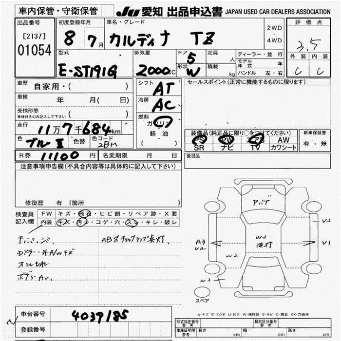 TOYOTA CALDINA - лот 1054