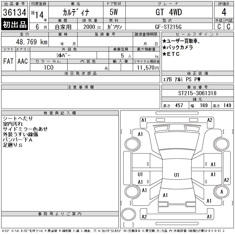 TOYOTA CALDINA - лот 36134