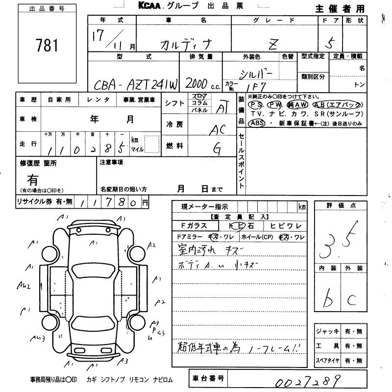 TOYOTA CALDINA - лот 781