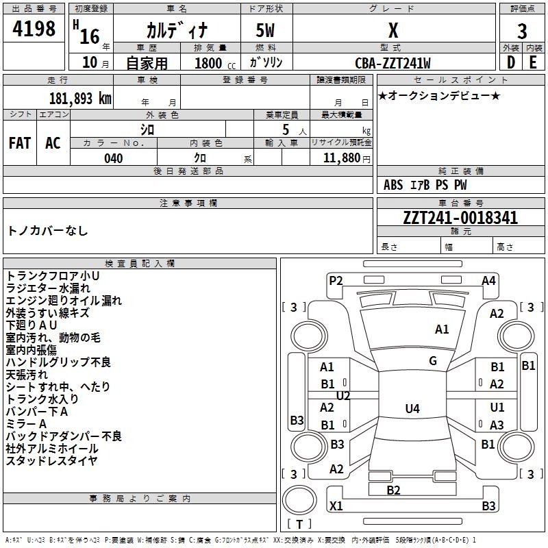 TOYOTA CALDINA - лот 4198