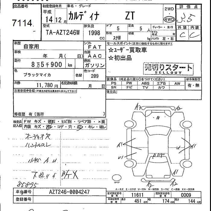 TOYOTA CALDINA - лот 7114