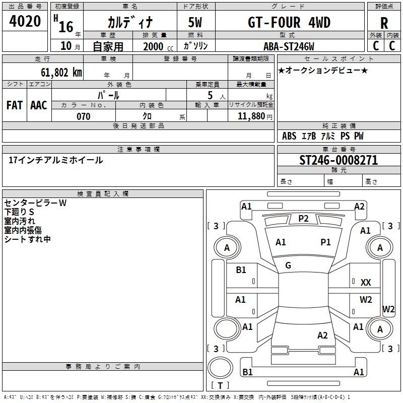 TOYOTA CALDINA - лот 4020